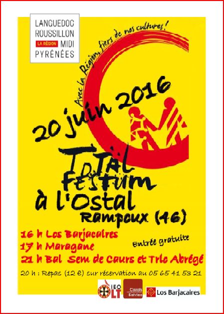 Cette année ,grande fête de la musique traditionnelle à l’Ostal proposée par « Los Barjacaires », dans le cadre du Total Festum,manifestations initiées et soutenues par la Région afin d’encourager la promotion des cultures occitanes et catalanes . A Lavercantière, cette manifestation est organisée en partenariat par l’IEO d’OLT et LOS BARJACAIRES.