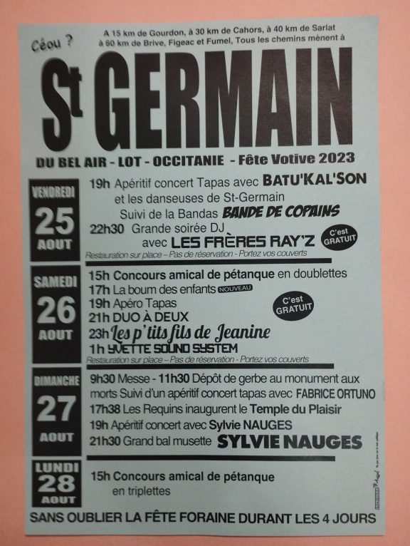 Fête votive à St germain (du bel air) Publié le lundi, 21 août 2023dimanche, 20 août 2023 par L'épistole