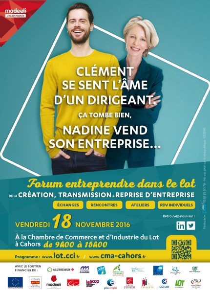 Le Lot compte 7 608 dirigeants de plus de 50 ans (plus de 53 % des responsables en activité). 50 % des cessions se font dans le cadre d’une retraite. Le département affiche 66 348 emplois ainsi répartis : 36 % dans les commerces, l’artisanat, les transports et les services ; 15 % dans l’industrie ; 8 % dans la construction ; 8 % dans l’agriculture et 33 % dans l’administration, l’enseignement, la santé et l’action sociale. La CCI veut améliorer la parité hommes-femmes. 30 % des femmes salariées travaillent dans l’agriculture ; 25,6 % dans l’industrie et le commerce et 24 % dans l’artisanat. Depuis le mois de janvier 2016, 37 projets (27 créations, 10 reprises) ont été instruits. 54 % d’hommes et 46 % de femmes. Soit un total de 89 emplois.
