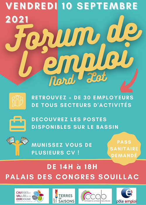 En partenariat avec «Lot, Terres de Saisons» et Pôle Emploi, les communautés de communes Cauvaldor et Quercy Bouriane se mobilisent afin de proposer aux employeurs et demandeurs d’emploi du territoire, un forum multisectoriel.