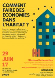Le jeudi 29 juin, au Tiers-Lieu (face à la sous-préfecture), aura lieu une séance d’information sur les économies qu’il est possible de réaliser dans l’habitat. Raymond Gorgemans et Céline Finzinger vous présenteront quelques pistes pour rénover intelligemment nos logements et feront le point sur les gestes à adopter pour diminuer nos factures énergétiques.