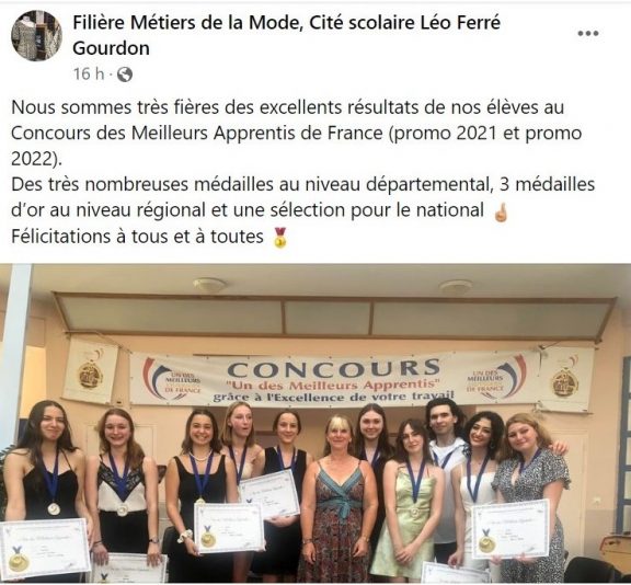 Gourdon Metiers de la Mode . Encore et toujours des médailles…