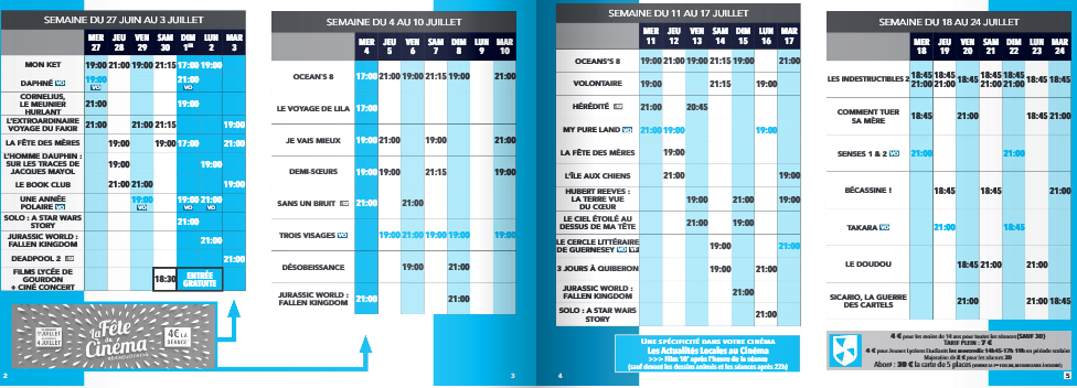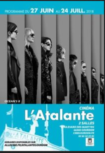 Gourdon: Programme du cinéma Publié le samedi, 21 juillet 2018dimanche, 22 juillet 2018 par jevouslis Programme de l’Atalante du 27 juin au 24 juillet Cliquez sur les images Le Programme de l’Atalante et des cinémas des environs est en permanence à la rubrique culture