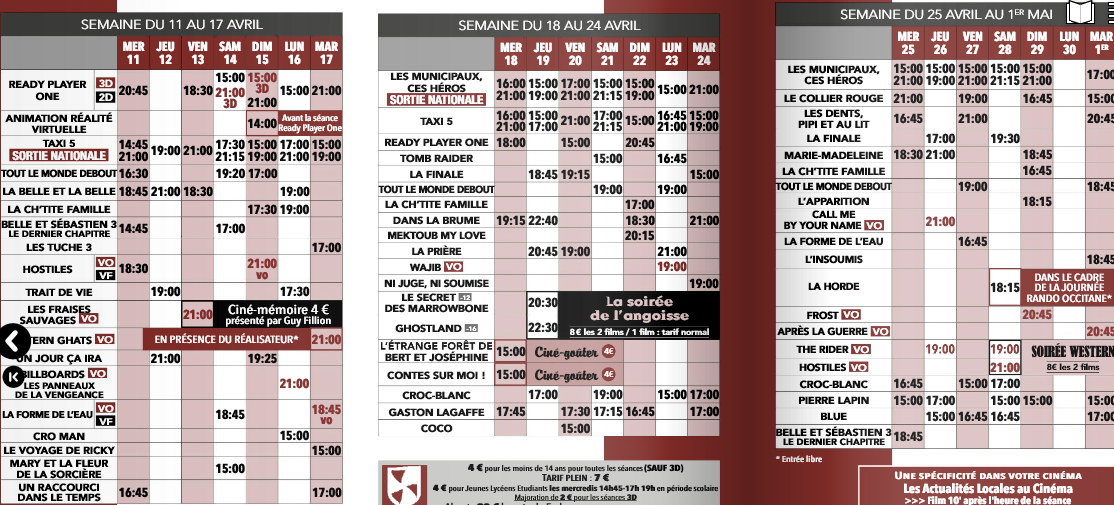 Gourdon: Programme du cinéma Publié le dimanche, 29 avril 2018dimanche, 29 avril 2018 par jevouslis Programme de l’Atalante du 11 avril au 1er mai Cliquez sur les images . Le Programme de l’Atalante et des cinémas des environs est en permanence à la rubrique culture
