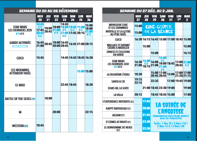 Gourdon: Programme de l’Atalante Publié le mardi, 9 janvier 2018mercredi, 17 janvier 2018 par jevouslis Programme du 20 décembre au 16 janvier . Ciné Gouter mercredi 27 décembre 2017 à 15:00 » Mr Chat et les shammies » ( À partir de 2 ans ) Site de l’Atalante