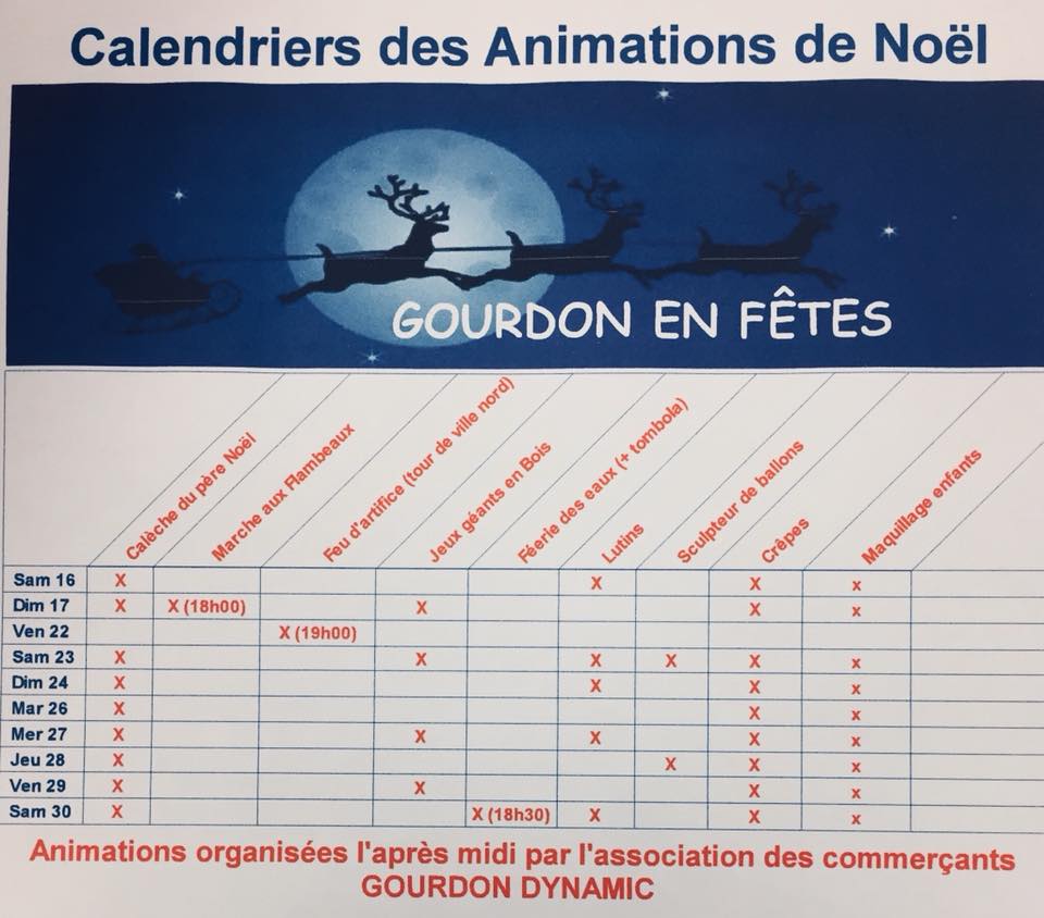 Programme des animations de Noël organisées par les commerçants de « Gourdon Dynamic »