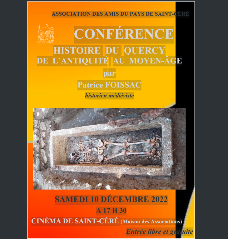 Patrice Foissac, historien médiéviste sera le conférencier de la soirée qui aura pour thème:" histoire du Quercy: de l'antiquité au Moyen-Âge"