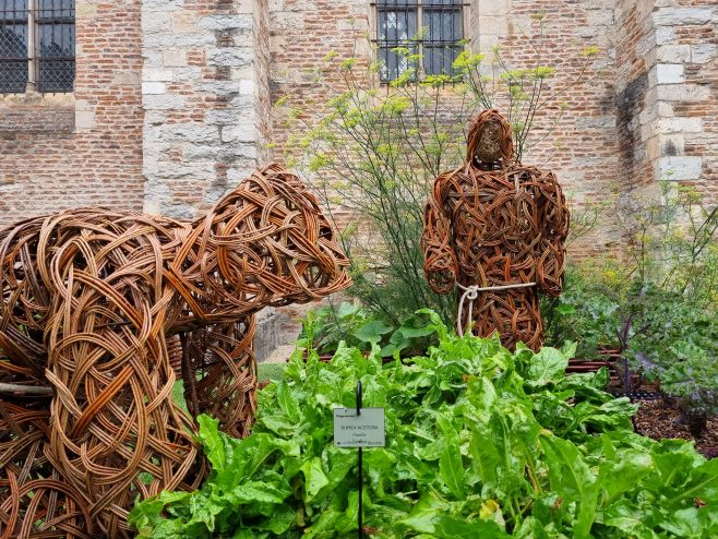 .Trois nouveaux moines en osier équipés d’outils de jardinage symbolisant le travail au jardin potager des religieux à l’époque médiévale viennent de réinvestir les deux jardins : les deux premiers, l’un en position debout, l’autre en position courbée pour cultiver au sol ont pris place dans le Courtil des Moines. Le troisième, debout, a investi l’Enclos des Cordeliers. L’implantation de ces structures dans ces deux jardins secrets est liée à l’histoire des lieux : les Cordeliers étaient des religieux qui avaient une corde autour de la taille qui leur servait de ceinture (d’où le nom cordelier), et le courtil est le nom pour désigner le jardin potager qui était cultivé par les moines. Les trois personnages ont été conçus et réalisés par le corrézien Olivier Ton, de l’entreprise Osier etc… spécialisée en vannerie et compositions d’architecture végétale.