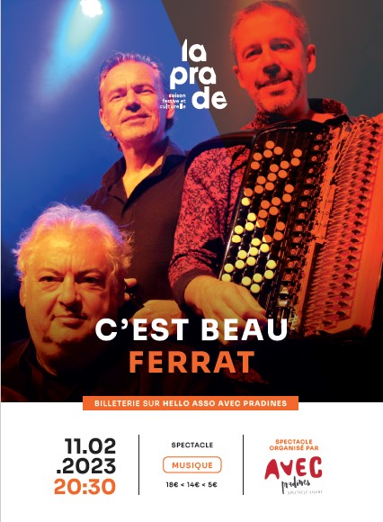 La compagnie Opéra Éclaté présente « C’est beau… Ferrat », avec Éric Pérez au chant, Jean-Marc Padovani aux saxophones et aux arrangements et Alain Bruel à l’accordéon.