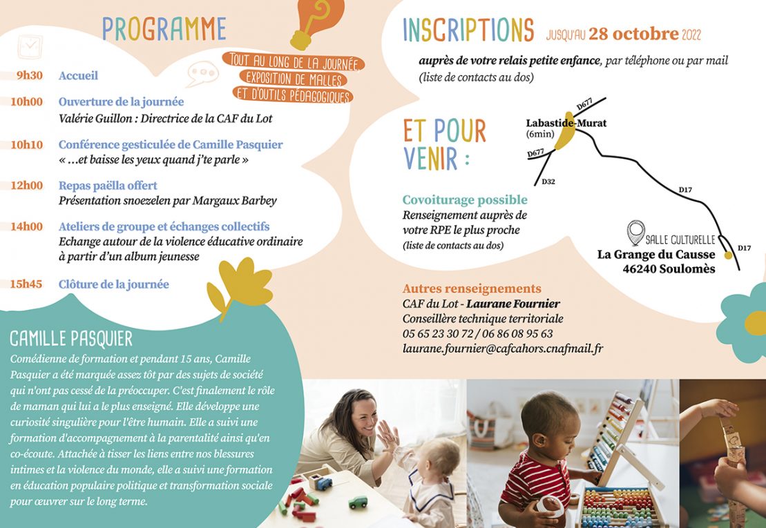 Informations et inscriptions par mail auprès de laurane.fournier@cafcahors.cnafmail.fr.