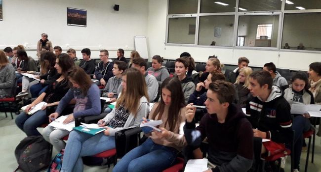 elevesVendredi 7 octobre, les élèves des 3 classes de 3e du collège de Prayssac se sont rendus à Cahors pour visiter le lycée Monnerville ainsi que le centre d’information et d’orientation et la médiathèque du pays de Cahors. Cette journée d’information qui s’inscrit dans le parcours d’orientation des élèves, a été mise en place depuis plusieurs années à l’initiative de Sophie Gipoulou, conseillère principale d’éducation du collège d’Istrie. L’objectif est de faire prendre conscience aux futurs lycéens que le principal enjeu de l’année de 3e consiste à réussir son orientation. Accompagnés de leurs professeurs principaux, les collégiens ont pris la mesure de la différence entre leur petit établissement rural et la cité scolaire cadurcienne. «Cette journée est une 1re étape qui ouvre à la réflexion et rend les choses concrètes dès le début de l’année», nous a dit Jacques Baijot, professeur principal d’une des classes de 3e. Il y aura ensuite le travail de fonds fait avec les élèves, les familles, les enseignants et la conseillère d’orientation, le salon Proforma début 2017, les journées «portes ouvertes», les mini-stages… Comme le dit J. Baijot «l’année scolaire passe vite mais nous espérons qu’en juin tous les élèves auront trouvé leur voie».