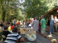 Pendant que randonneurs, marcheurs et visiteurs s’égayaient dans la campagne environnante, l’atelier de lacto-fermentation attirait de nombreux participants. Une quarantaine de personnes, certains déjà adeptes