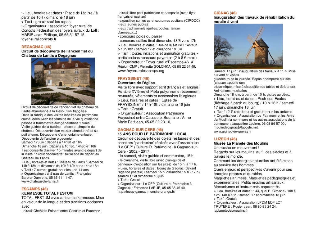 .Dans le cadre des journées nationales  du Petit Patrimoine de pays et des moulins le samedi 17 et dimanche  18 juin à Dégagnac :