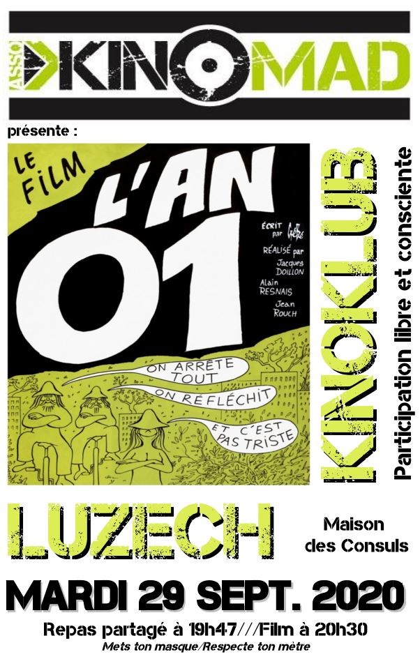 Emblématique de la contestation libertaire des années 1970, L’An 01 aborde des thèmes aussi variés que l’écologie, la négation de l’autorité, l’amour libre, la vie en communauté, le rejet de la propriété privée et du travail.