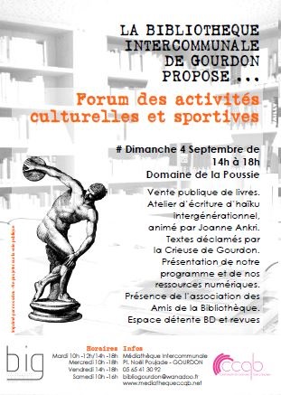 Venez nous rencontrer lors du forum des activités culturelles et sportives ce dimanche 4 septembre 2016 de 14h à 16h, au domaine de la Poussie.