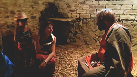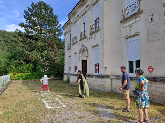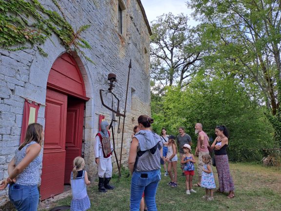 Le parcours débute par une phrase qu’il faut découvrir à l’aide d’un code, c’est ce message qui va vous conduire au vieux four en pierre avec sa boulangère, là encore c’est une devinette qui vous attend pour continuer jusqu’au château et rencontrer le garde qui vous sert de guide, de fil en aiguille vous tissez le parcours en vous amusant à découvrir des énigmes, à faire des calculs, à marcher avec un verre rempli d’eau, à jouer à la marelle, au chamboule-tout et enfin à délivrer le prisonnier qui se trouve enfermé dans le cachot sous-terrain du château.