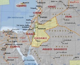 La Jordanie, composée principalement d’un plateau désertique aride et d’une région montagneuse, est entourée à l’ouest par la Palestine et Israël, au sud par l’Arabie saoudite, à l’est par l’Irak et au nord par la Syrie. Le climat est sec et chaud, surtout sur la plus grande partie du territoire occupé par le désert d’Arabie mais le pays a cependant une saison pluvieuse de