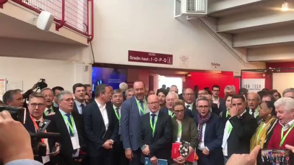 Plus marquant encore, quelques secondes plus tard, les présidents et présidentes de conseils départementaux entonnent une Marseillaise dans le foyer du palais des congrès, afin de marquer, plus clairement encore, leur protestation vis-à-vis du projet de réforme de la fiscalité locale.