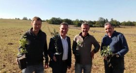 La pépinière de Mercuès fournit les plants qui sont enfouis dans le sol calcaire de Sauzet.Environ 30 % de la surface totale ont été plantés, le pourcentage montera à 40 % à la fin de la saison.