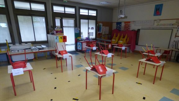 Ce mardi matin, la rentrée n’a concerné que quinze enfants au CP/CE1 et sept au cours moyen. « La mairie avait sondé tous les parents par mail », précise Victor Vaz. « Ils étaient inquiets. Ils ont reçu les protocoles et ont pu constater ce matin que c’était « carré ». Cela les a fortement rassurés ». Le directeur a expliqué que le faible nombre d’enfants est aussi du à l’étalement des rentrées, qui vont se prolonger jusqu’au 1er juin. Vendredi sera le tour des Grande Section de maternelle, lundi les petits et moyens, la classe spécialisée et les CE2-CM1… » Côté organisation, il faut d’abord passer par le thermomètre, se laver les mains, suivre les flèches jusqu’au marquage devant sa classe. Ne pas courir, ne pas se toucher, rester à bonne distance. Dans les classes, distance obligatoire, ne pas se prêter les affaires, chaque place est marquée. Les repas seront pris dans la salle de restauration, où une place sur 2 a été enlevée. Dès que la capacité de la salle sera dépassée, direction la salle des fêtes. « Nous avons la capacité de dédoubler chaque classe » dit Claude Taillardas, « et nous avons les solutions matérielles de garderie. Il appartient à l’Education Nationale de définir le cadencement. Notre souci principal, c’est la sécurité de tous, enfants, personnel, enseignants ». Pour que cette rentrée apporte toutefois un peu de joie, grâce à une grande surface gourdonnaise, tous les enfants se verront, à l’heure du goûter, remettre des chocolats de Pâques.