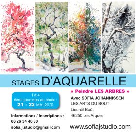 La reprise démarre notamment par un stage d’aquarelle sur le thème des arbres, les 21 et 22 mai 2020. Quatre demi-journées sont proposées et les participants peuvent choisir le nombre de demi-journées à leur convenance. Pour plus d’informations et vous inscrire, contactez Sofia Johannissen au 06 26 34 40 80 ou par mail : sofia.j.studio@gmail.com