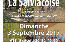 Pour la 5e année consécutive, le club Salviac Cyclotourisme organise une randonnée VTT au cœur du Lot, ce dimanche 3 septembre. Elle comporte cinq circuits VTT de 20, 30, 40, 50 et 60 km, et deux circuits pédestres de 10 et 15 km. Inscriptions et départ de la halle Benoit-Serres (en face de la mairie), parking fléché route de Dégagnac. Inscriptions à partir de 7 h 30. Départ groupé des VTT à 8 h 30, des marcheurs à 8 h 45. Tarifs : VTT (licenciés et non licenciés) 10 €; marche 5 €, gratuit pour les moins de 12 ans ; inclus café avant départ, deux ravitaillements, pasta-party et une boisson à l’arrivée. Contact : 07 78 54 79 80.