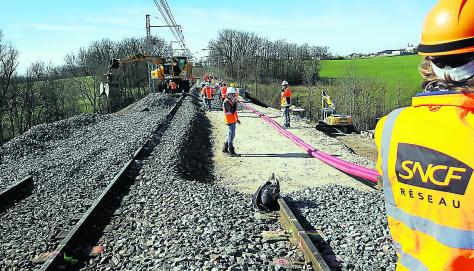 Sur le site, la ronde des scrapers, des pelleteuses, les montagnes de gravats, les rails découpés et déposés en contrebas d’un dévers vertigineux… Tout cela relève effectivement plus des grands travaux structurants que de simple maintenance.
