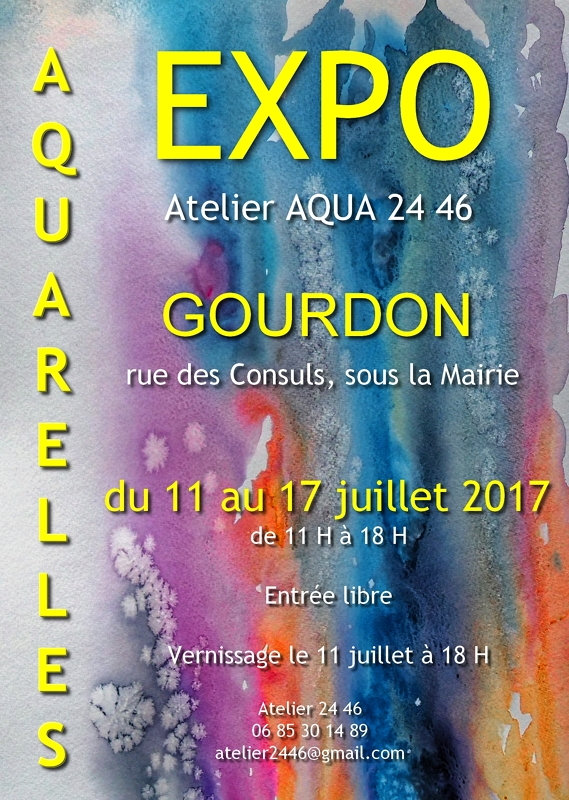 Cet été, pour la première fois, l’Association AQUA2446 exposera ses travaux d’aquarelle de l’année 2017, dans la salle basse de la Mairie de Gourdon, située rue des Consuls (accès par la rue du Majou ou la rue Farinié)