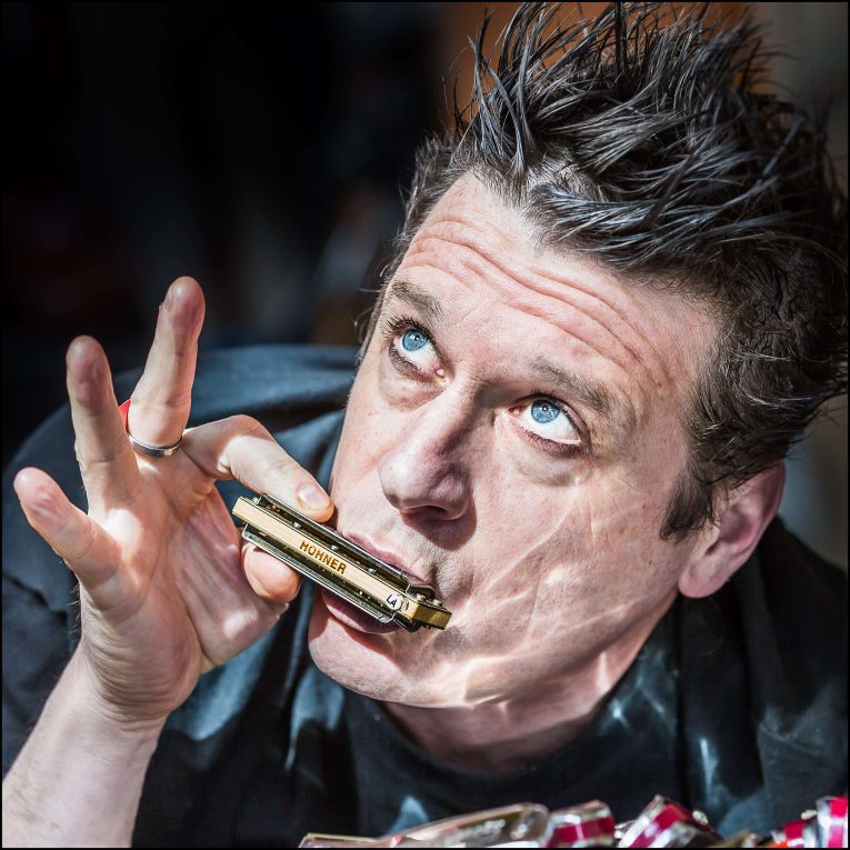 Pour ce projet, Mickaël Mazaleyrat vient avec toute une batterie d’instruments : sur scène, un micro, un clavier, une panoplie d’harmonicas et de guimbardes, une guitare. Avec le pied, il pilote des machines qui enregistrent des boucles de son, une rythmique, des choeurs. Très vite, il dresse ses chansons sur scène comme un chef le fait en cuisine sur des assiettes. Le geste est sûr. Les boucles tournent, les harmonicas virevoltent dès les premières mesures.