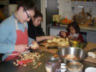 Ce mercredi, Flavie, Léa, Lilian, Maxime, et San ont revêtu le tablier de cuisiner en chef et Jean-Pierre leur a fait découvrir le plaisir de cuisiner ainsi que les secrets de la préparation du repas.. Au menu, assortiment de légumes râpés, œufs mimosas et tarte aux pommes sous son coulis de caramel. Dans la bonne humeur, chacun a mis la main à la pâte : lavé, épluché, râpé les légumes, les pommes, et même fait la pâte de la croustillante tarte.