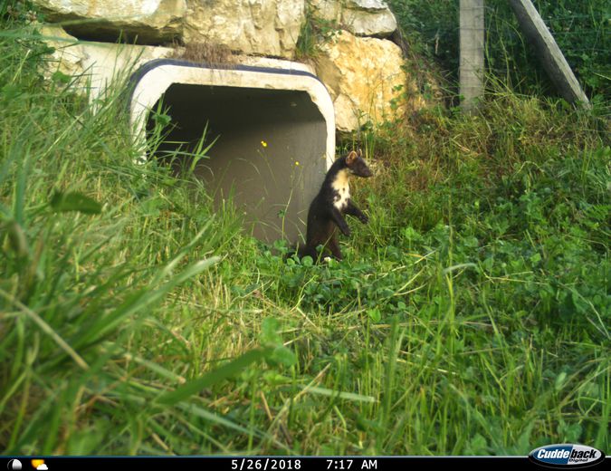Photo: Une martre des pins empruntant un passage créé par le département.