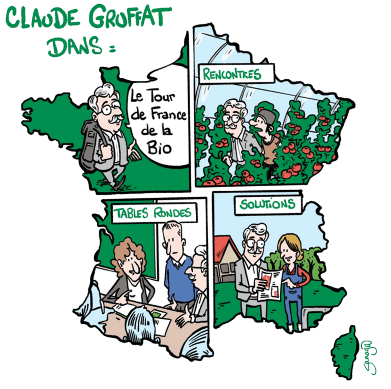 Pour Claude Gruffat, l’agriculture bio reste la solution d’avenir car elle produit local pour consommer local, sans recours à des polluants, en empruntant des circuits courts et en réduisant les coûts intermédiaires.