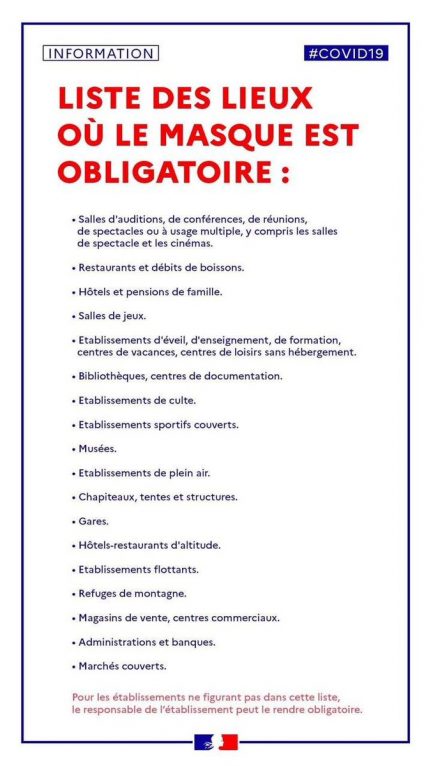 Liste des lieux ou le masque est obligatoire ajouté dans l’article