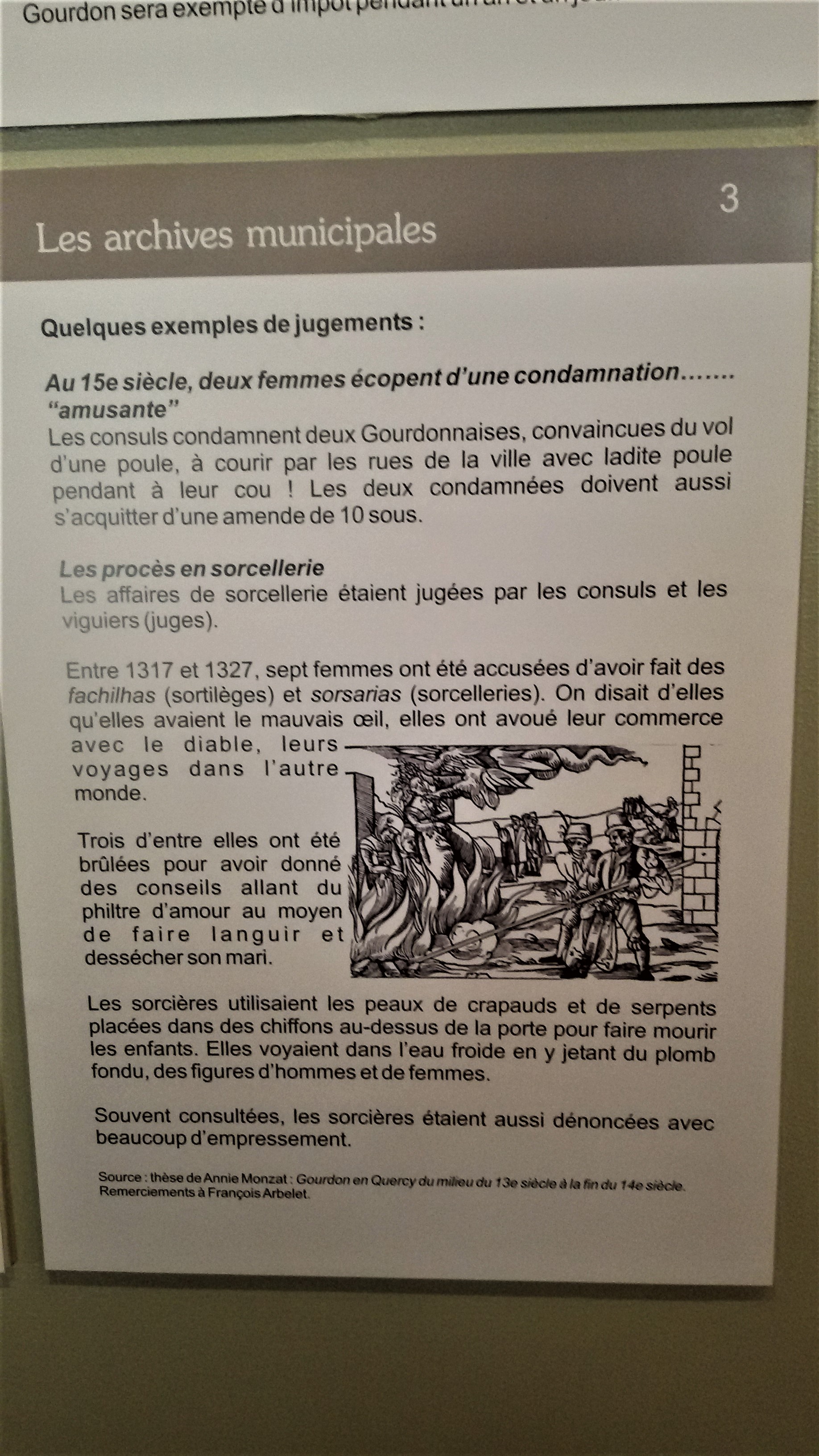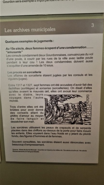 Car un des trésors de Gourdon, ce sont ses archives. La mairie ayant toujours été la maison des consuls, elles ont été bien conservées. On y trouve une copie de la charte des coutumes de la ville (établie en 1244). Un de ses 39 articles prévoit qu’un coupable de meurtre sera enterré vivant sur le corps de sa victime. « Cela a été fait trois fois, ça s’appelait le mort sur le vif », dit Delphine Soubiroux-Magrez