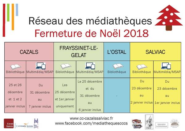 Pendant les fêtes de fin d’année, certains espaces seront partiellement fermés dans le réseau des médiathèques de la communauté de communes Cazals-Salviac.
