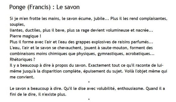 Pour illustrer poétiquement cette journée mondiale de l’hygiène des mains, voici un texte de Francis Ponge.