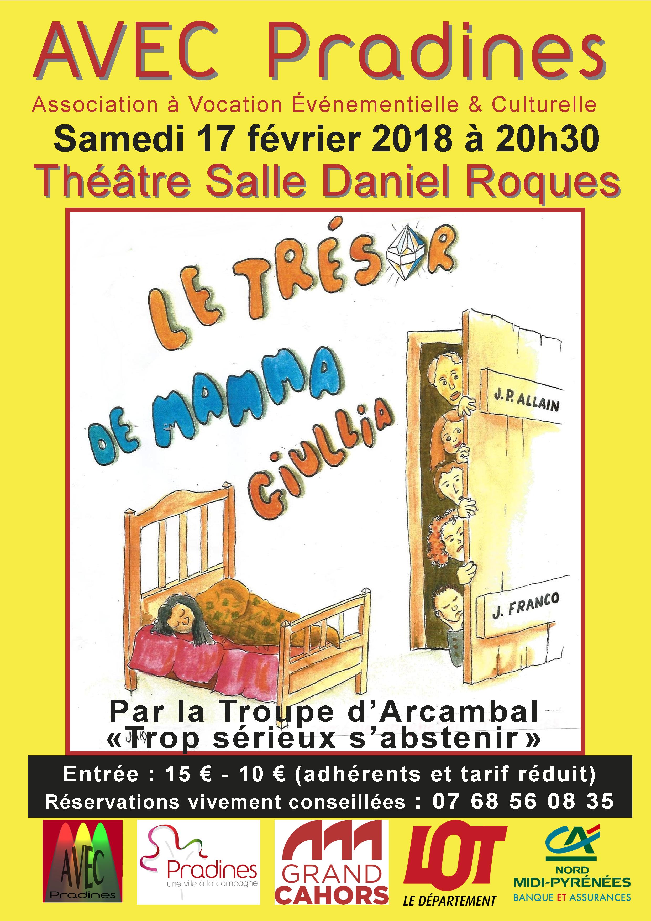 Les comédiens de la Troupe d’Arcambal n’ont qu’un désir : se distraire et amuser le public. Venez donc rire avec eux le samedi 17 février, à 20 h 30, salle Daniel Roques, à Pradines et pensez à réserver !