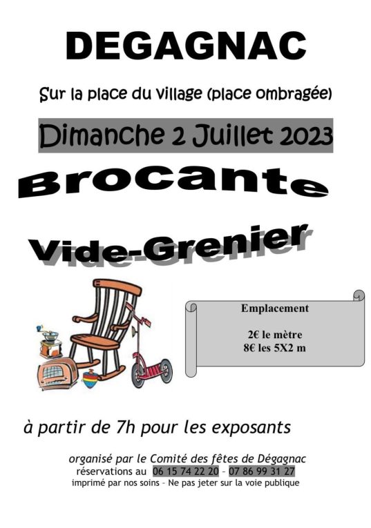 N’oubliez pas , le vide grenier à Dégagnac, c’est ce dimanche!