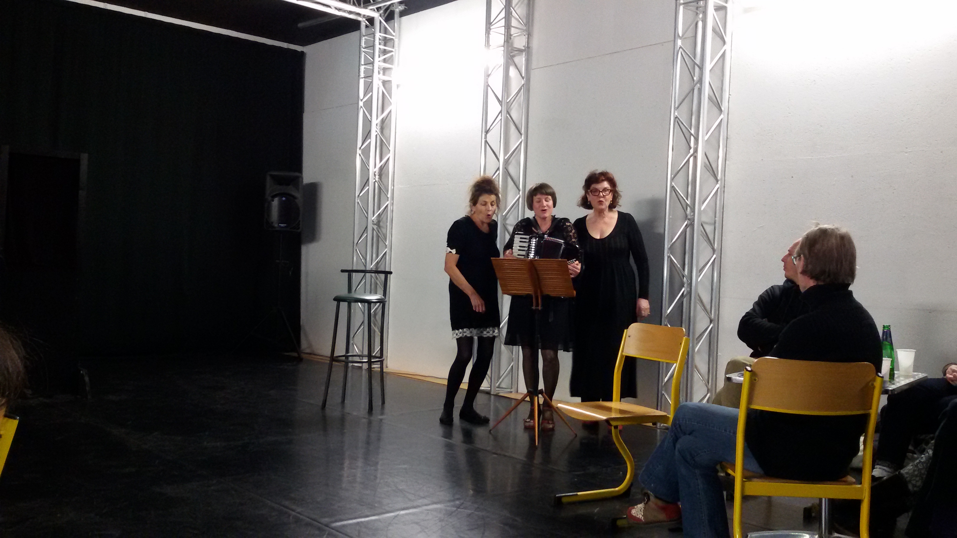 Nous tirons beaucoup d’avantages en empruntant à l’écriture de type cabaret. D’abord cela permet, en multipliant les séquences, de recourir à la caricature, à la tragédie, au clownesque, à la chanson… pour montrer trois femmes dans des états différents, qui parlent des femmes. Ensuite, le cabaret permet d’aller à la rencontre du public, d’échanger, de partager.