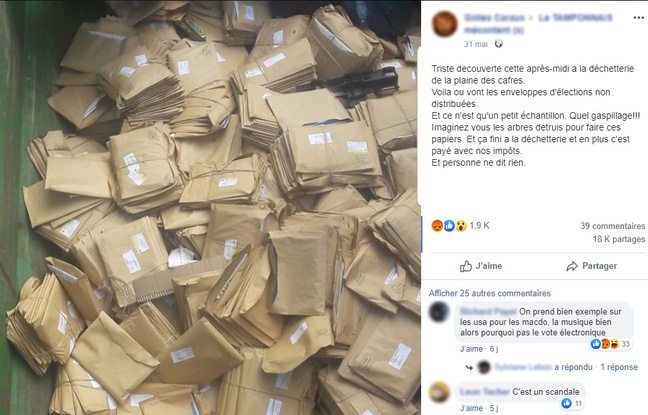 Mais le cliché a d’abord été posté sur un groupe Facebook ouvert aux habitants de la commune du Tampon, à la Réunion, par un internaute dénonçant cette « triste découverte » au sein d’une déchetterie locale : « Voilà où vont les enveloppes d’élection non distribuées. Et ce n’est qu’un petit échantillon. Quel gaspillage !!! Imaginez vous les arbres détruits pour faire ces papiers. Et ça finit à la déchetterie et en plus c’est payé avec nos impôts. »