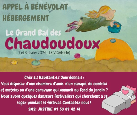 Les Chaudoudoux ont besoin de vous! Publié le mercredi, 17 janvier 2024jeudi, 18 janvier 2024 par Anne-Laure Goix Jusqu’a 30 mn de route du Vigan, tout peut nous interesser!!!Contactez nous!