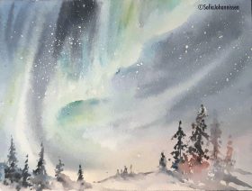Les ciels d’hiver et les aurores boréales… à l’aquarelle !