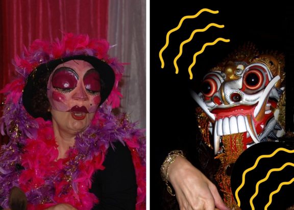 Élève de Jacques Lecoq, de Michel Bouquet, d’Ariane Mouchkine entre autres, formée à Bali, professeur de théâtre en Israël, Nelly Amar a fondé le théâtre Aloual Persona avec le metteur en scène et comédien Thierry Morel. Elle sait comme personne raconter la grande Histoire des Masques de Bali, du Mexique, du Burkina Faso, de Suisse, d’Italie et d’ailleurs et c’est une véritable fête ! Elle interpelle le public, lui communique avec talent l’Art du Masque, et le transporte avec toute la virtuosité des comédiens de la commedia dell’arte, donnant à voir tout un éventail de caractères : naïf, autoritaire, prétentieux, avare, élégant. Une soirée tout public de 7 à 77 ans pour partager émotions et rires.