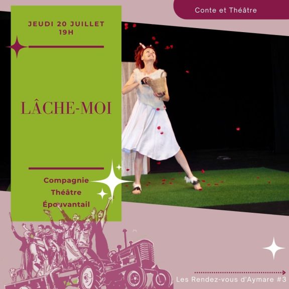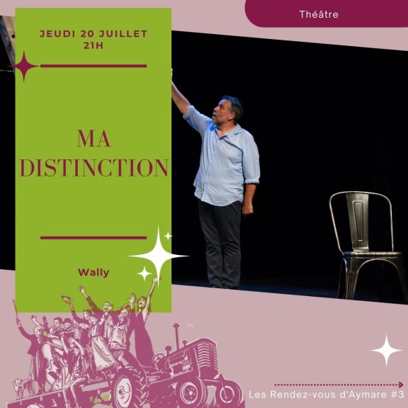 | 19h Lâche-moi | Le Théâtre d’Aymare Texte : La chèvre de M. Seguin d’Alphonse Daudet Avec : Sylvie Maury et Laurent Pérez Durée : 35 min Spectacle à partir de 5 ans Ma Distinction | Wally Écriture et jeu : Lilian Derruau dit Wally Mise en scène : Jérôme Rouger Durée : 1h30 Spectacle à partir de 12 ans |