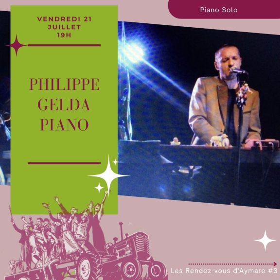 | 19h Philippe Gelda Piano Durée : 50 minutes Spectacle Tout Public 21h La Révolte | Compagnie Le Théâtre d’Aymare Texte de Auguste Villiers de L’Isle-Adam Mise en scène : Laurent Pérez Avec : Sylvie Maury et Laurent Pérez Accompagnés par Philippe Gelda, composition, arrangements, interprétation musicale (Piano) Durée : 1h10 Spectacle à partir de 12 ans |