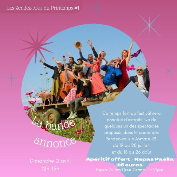Extraits live de quelques uns des spectacles proposés dans le cadre des Rendez-vous d’Aymare #3 de l’été 2023 (du 19 au 28 juillet puis du 16 au 26 août).