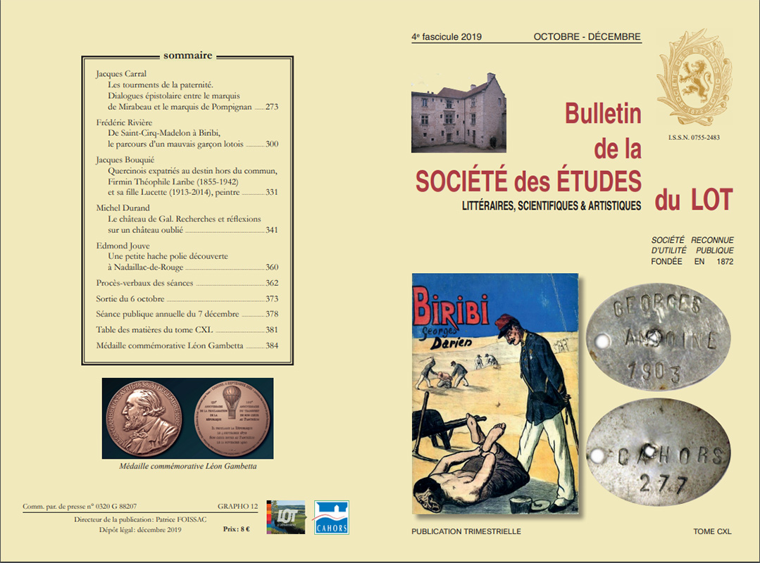 La Société des Etudes du Lot organise le 9 janvier une conférence de Michel Dutrieux (directeur) et Vincent Lecomte au 38, rue de la Chantrerie à Cahors  (cour de l’archidiaconé)