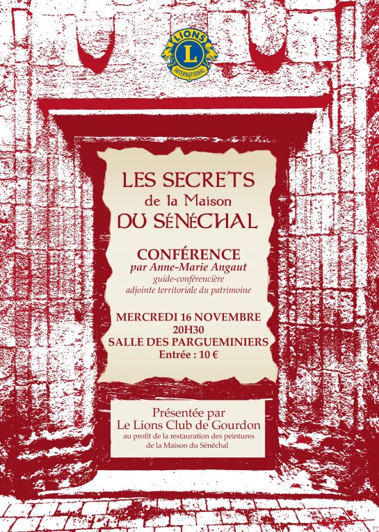 Cette conférence, présentée par le Lions Club de Gourdon, se déroulera à la salle des Pargueminiers le mercredi 16 novembre à 20h30.