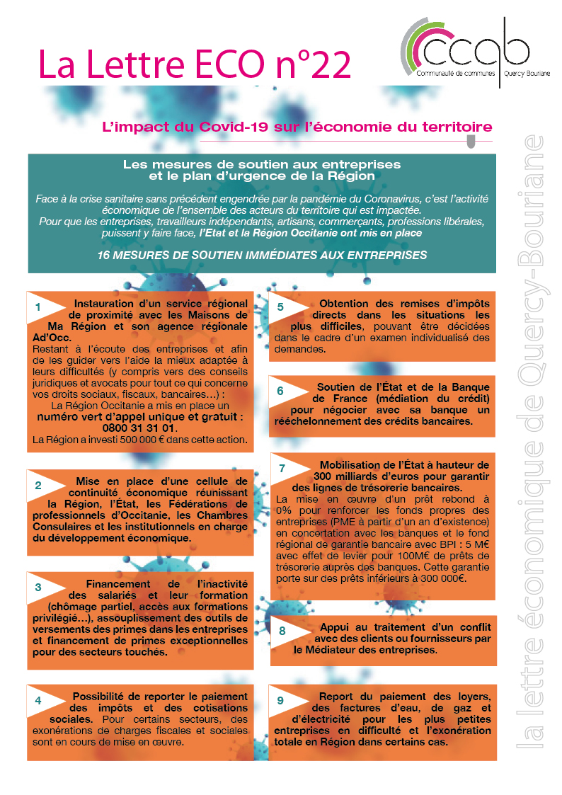 Lettre éco de la CCQB : Les mesures de soutien aux entreprises