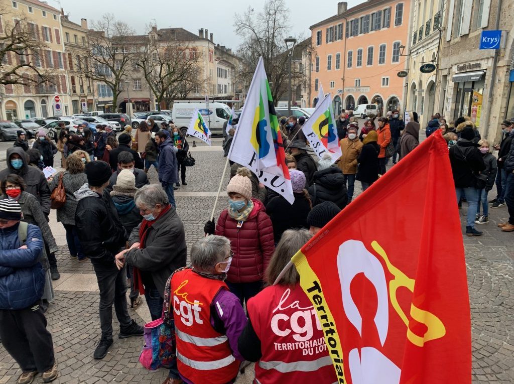 200 personnes étaient au rendez-vous ce 13 janvier place Chapou, à Cahors, dans le cadre de la journée de grève organisée par les syndicats enseignants soutenus notamment par la FCPE. Une délégation a été reçue par le directeur de cabinet du préfet du Lot, Jean-Paul Lacouture, et le DASEN, Xavier Papillon. « Dans le 1er degré, on a atteint 40 % de grévistes avec un nombre important d’écoles fermées. Dans le second degré, le mouvement a été suivi également. Des établissements étaient quasiment à l’arrêt. Lors de l’entrevue, chacun a pu s’exprimer. Nous avons insisté sur les modes de communication inacceptables, les protocoles inapplicables et sur le dévoiement de nos missions premières » a indiqué Christine Laverdet de l’UNSA.